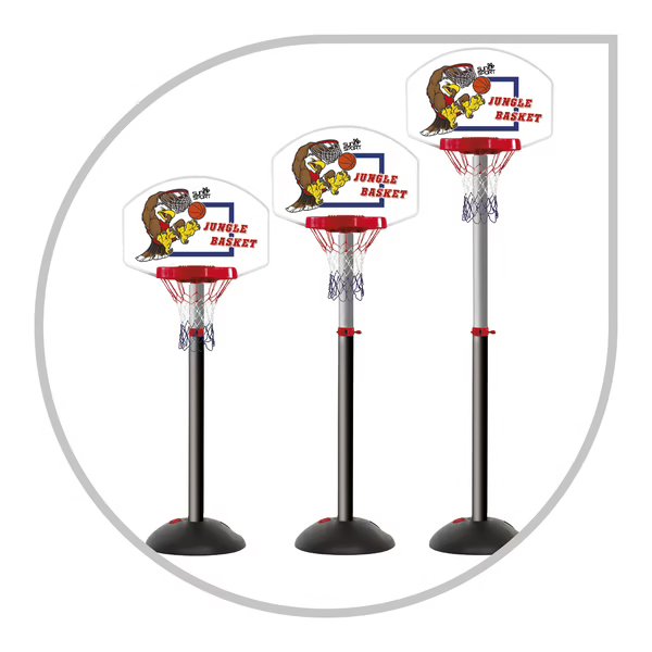 The basketball backboard is height adjustable to 3 sizes: 112 cm, 142 cm, 173 cm.