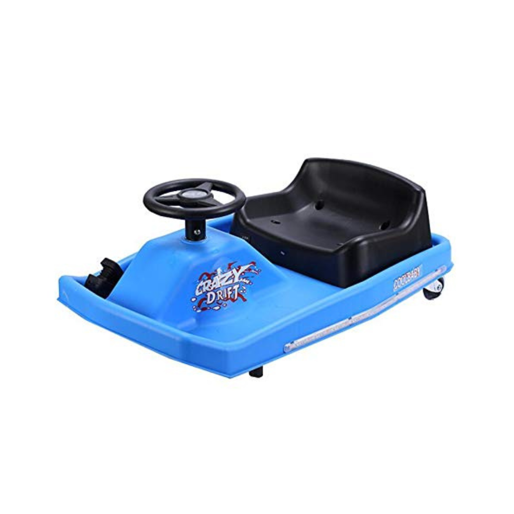 Drive, spin, or drift like a pro – at home! Drive like a go cart or lift the Drift Bar to kick into Crazy Cart mode. Patented drift system allows the driver to vary the rear caster angle so you can drive and drift forward, backward, sideways, diagonally, and everything in between!