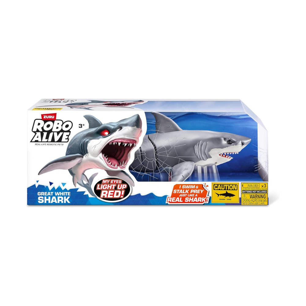 - Water Activated: Watch the Robo Alive Great White Shark come to life in water with ZURU’s advanced water activated technology!