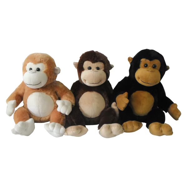 A soft-to-the-touch plush toy representing a sitting monkey.